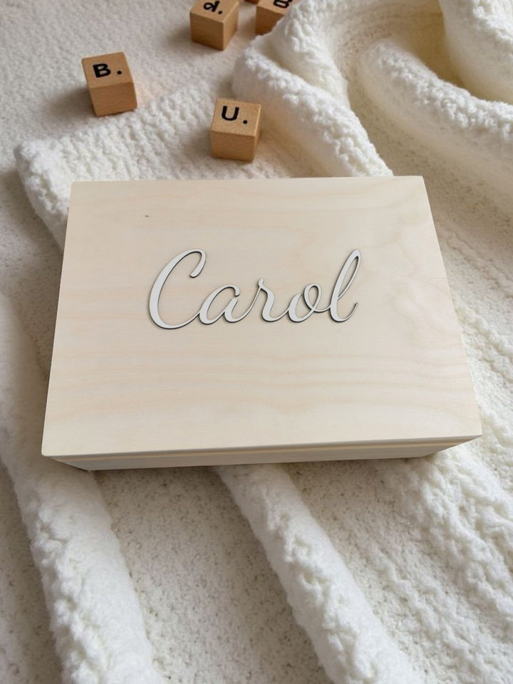 O cutie cu suflet, creata special pentru cele mai dragi amintiri ale micutului tau. Realizata din lemn natur, cutia poate fi personalizata cu numele copilului – un detaliu care o face cu adevarat unica.