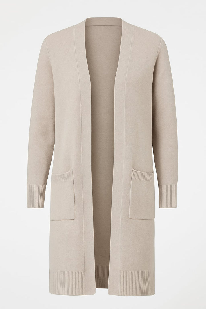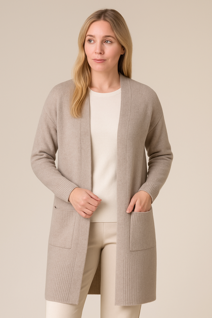 Cardigan de lana, tip jacheta pentru dama, moale si placuta la atingere, perfect pentru sezonul rece. Are o croiala lejera si un design clasic, usor de asortat atat la tinute casual, cat si la unele mai elegante. O piesa versatila si confortabila, ideala pentru zilele răcoroase de toamna iarna, pentru confort si stil natural.